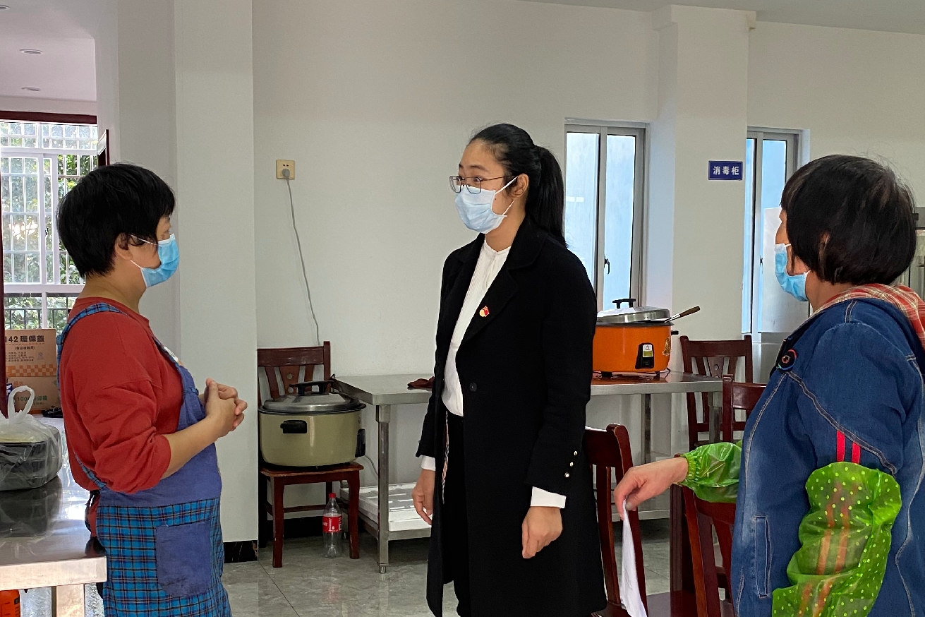 在公司辦公區域、食堂,志愿者們也加強對防疫工作的督促檢查,力求把防疫工作抓實抓細抓落地。