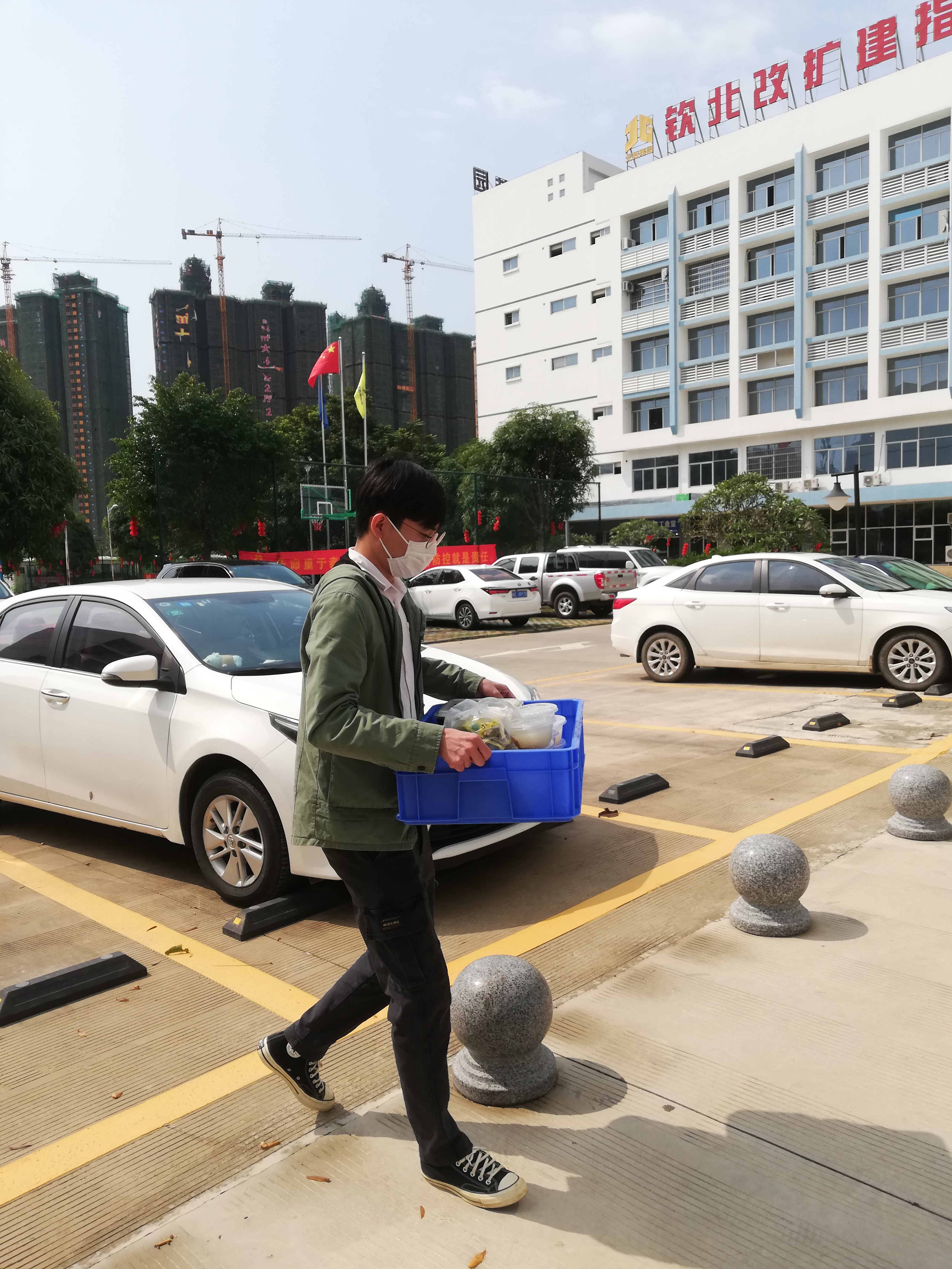 在公司,共有12名外地返回員工按要求于宿舍進行隔離。同時,每天亦有8名當地員工到崗值班。為做好這12名外地返回員工的生活保障及解決彈性值班人員的用餐問題,志愿者們嚴格落實分餐制,每天按時協助食堂工作人員做好餐食的裝盒及分發。