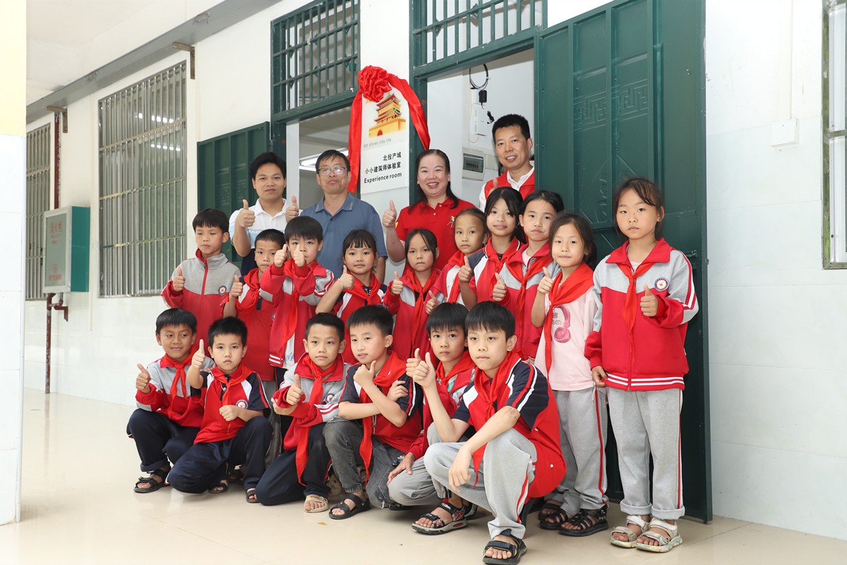隨后,陳莉與韋桂元一同為“小小建筑師體驗室”揭牌。據悉,這是北投產城集團繼賓陽縣恭村完小后打造的第二間“小小建筑師體驗室”,是北投產城集團積極參與希望工程美育“壯苗”行動服務項目的重要行動。下一步,北投產城集團將不定期開展形式有趣的沉浸式建筑體驗活動,活躍學生的思維,激發學生在日常生活中積極發現并探索建筑的熱情,同時鍛煉他們的動手實踐能力。